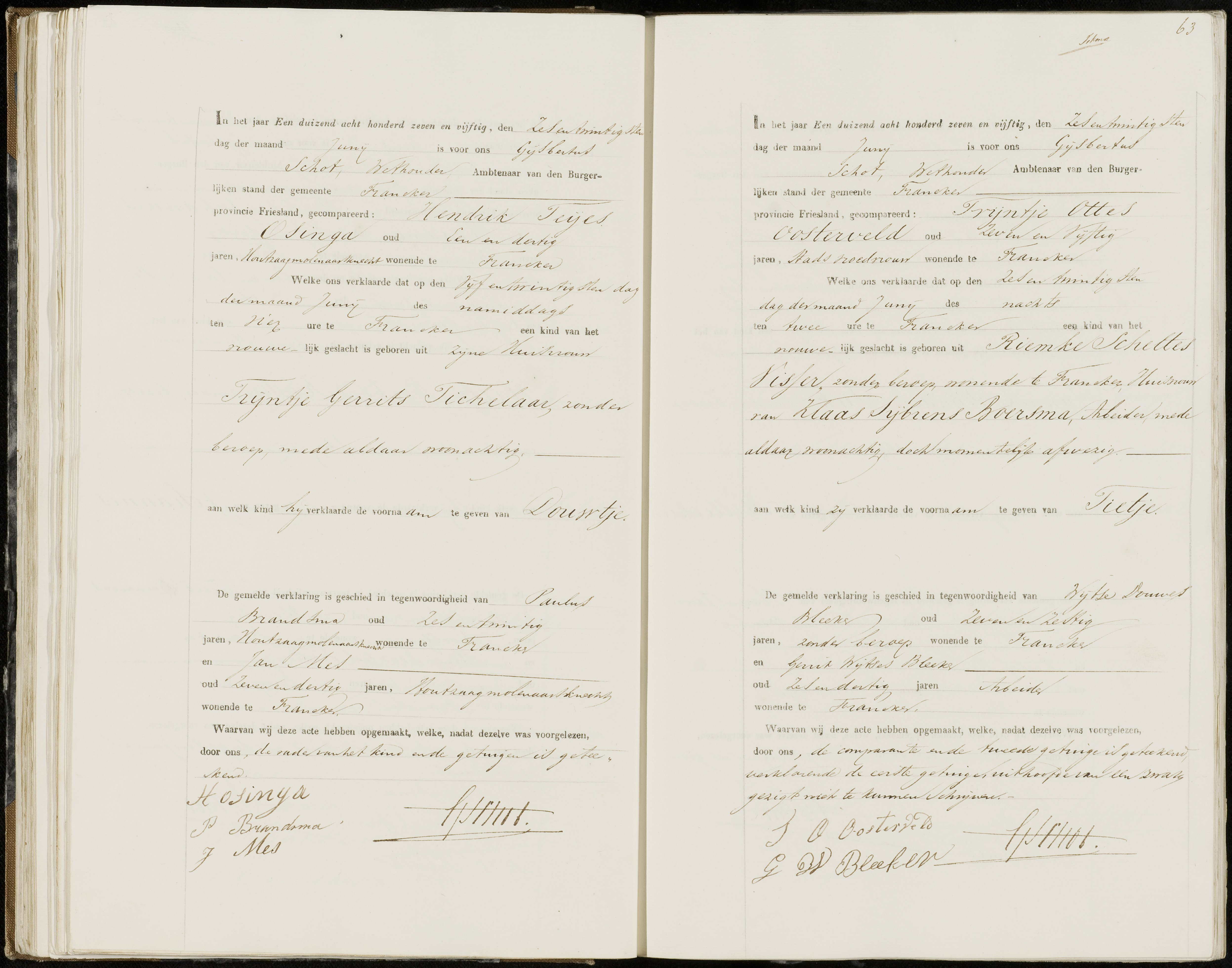 Hendrik is geboren in 1825 in Franeker. Trijnthe is in 1829 geboren in het dorp Midlum.