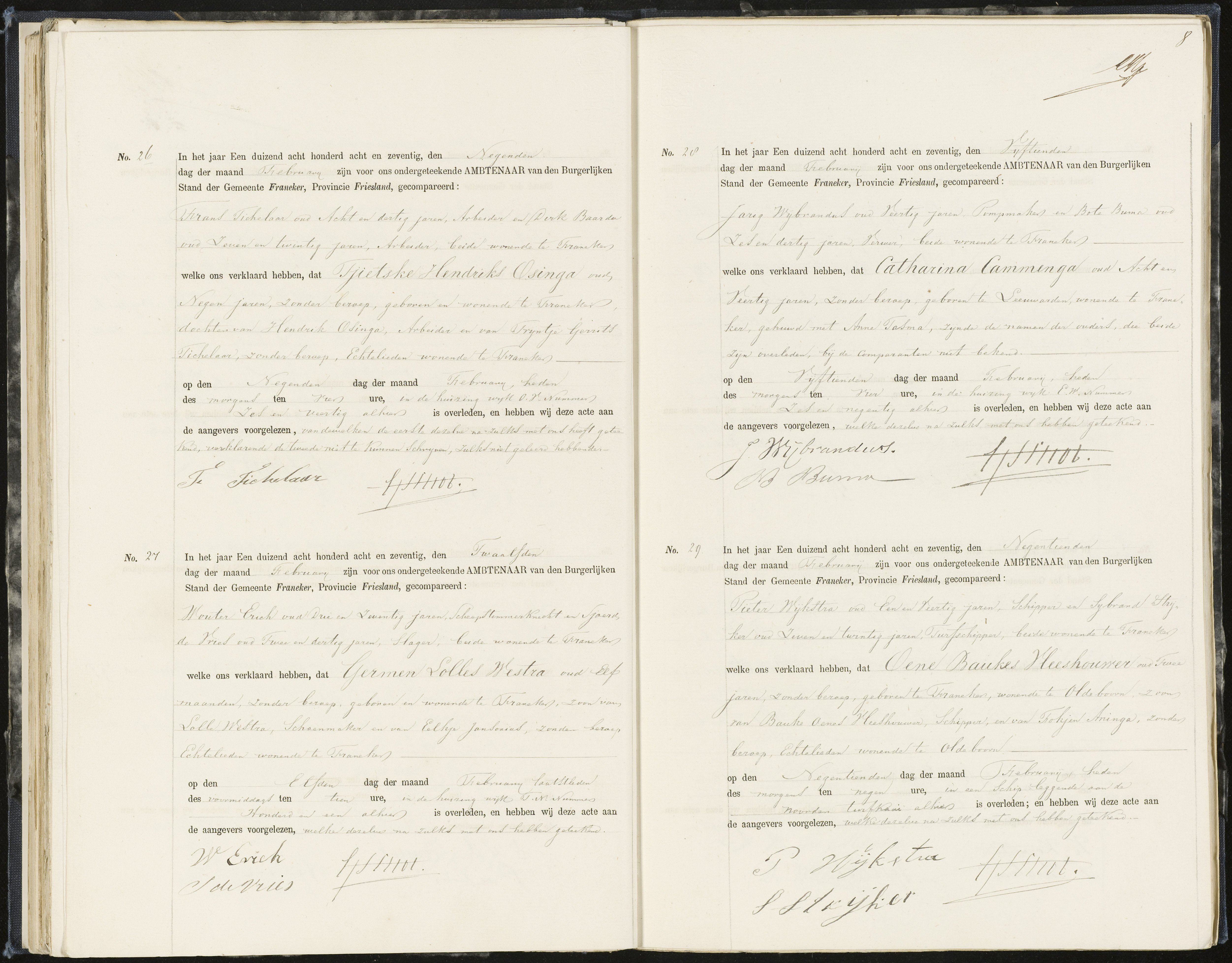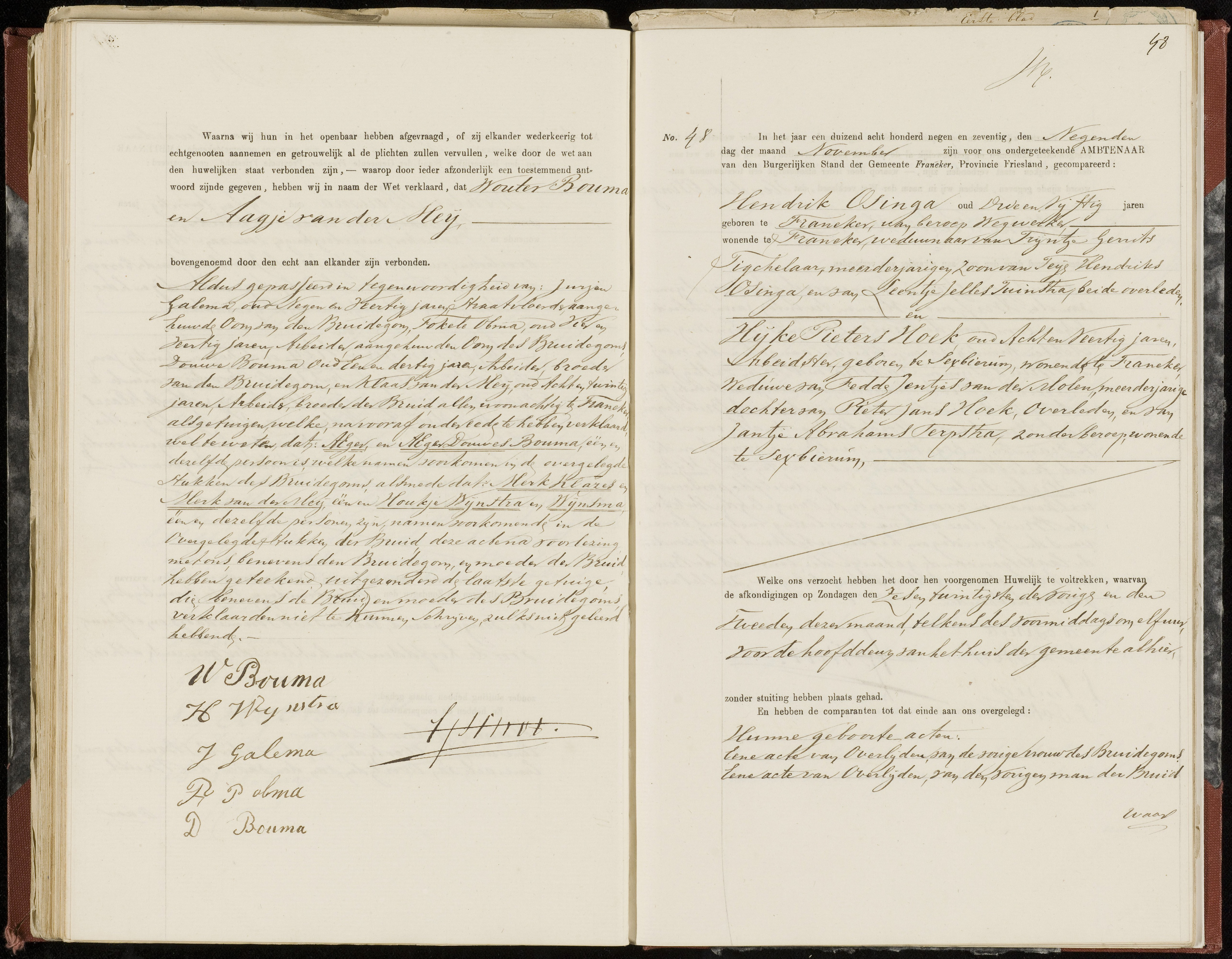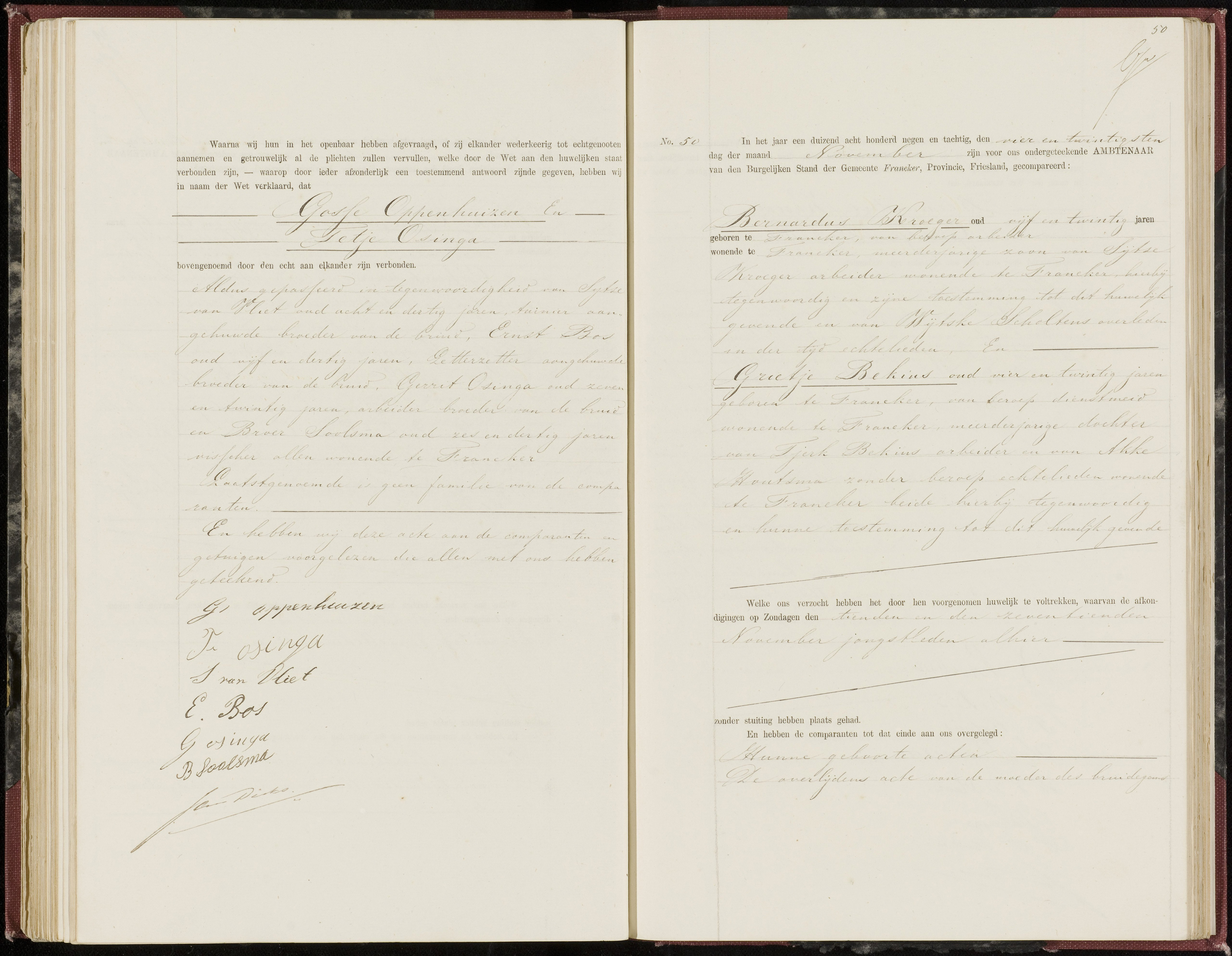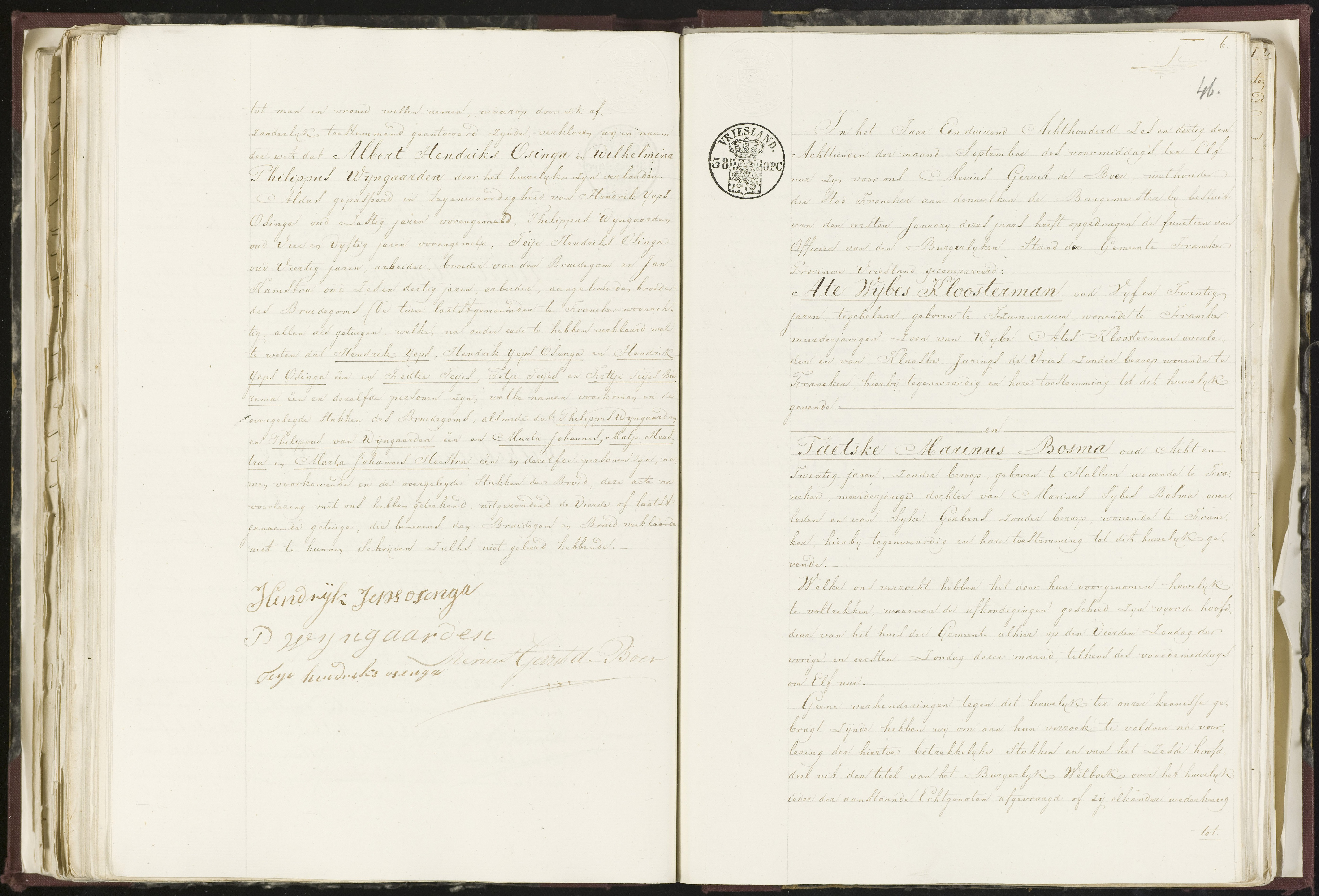 Ze trouwden op 23-05-1852 in Franeker. Hendrik is dan 26 jaar en van beroep houtzaagmolenaarsknecht.