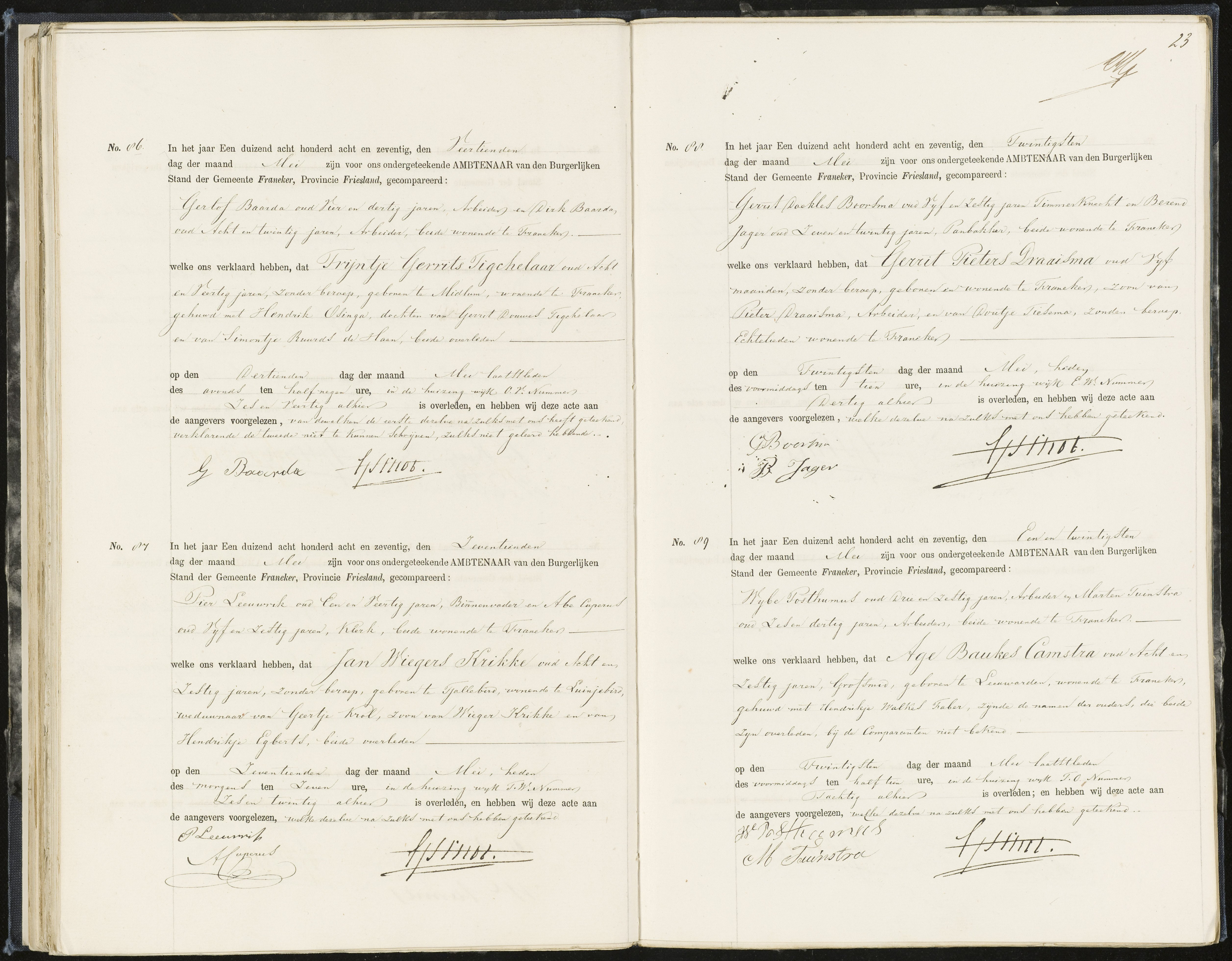 Ze leven hun hele leven samen in Franeker. Tussen 1874 en 1882 was Hendrik arbeider. In 1883 was hij arbeider/wegwerker. Hendrik is dan ongeveer 58 jaar.