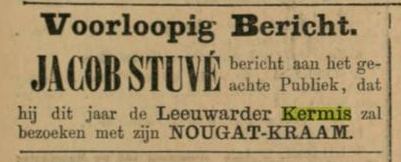 De beschrijving van het jaarlijkse feest in Leeuwarden is gedeeltelijk gebasseerd op een brief van de 16 jarige Richtje Driebergen uit Bolsward die het feest bezocht. Ook zijn artikelen uit 1898 in de Leeuwarder Courant gebruikt.